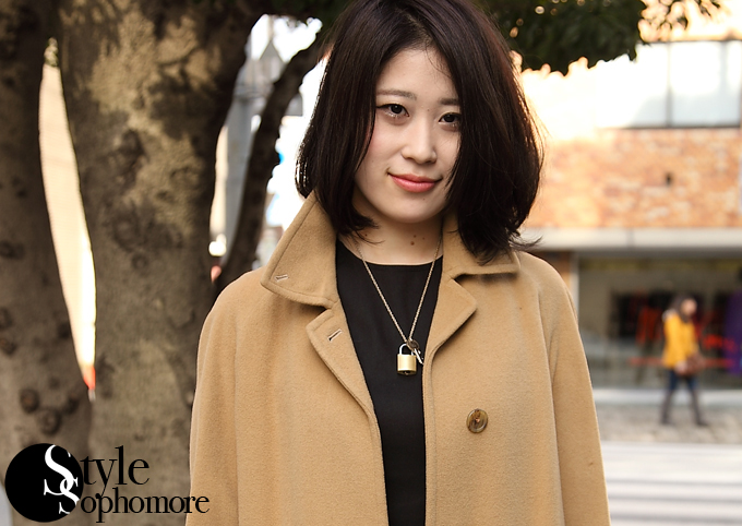 Mayu - Jewelry Design Assistant, wearing Laura dress, mother's coat with DIY fur collar, vintage Loewe bag.